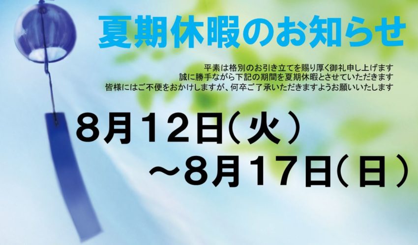 ■夏季休業期間2025年8月12日 (火) ~ 8月17日 (日)