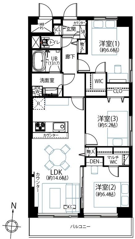 | 面積(専有・建物) | 74.4㎡ | ||
