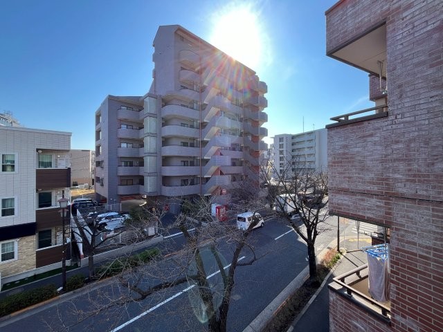 角部屋で2面採光のため陽当たり通風ともに良好です。眼下には桜並木の通りがあるので桜シーズンにはお部屋から眺められます。 |